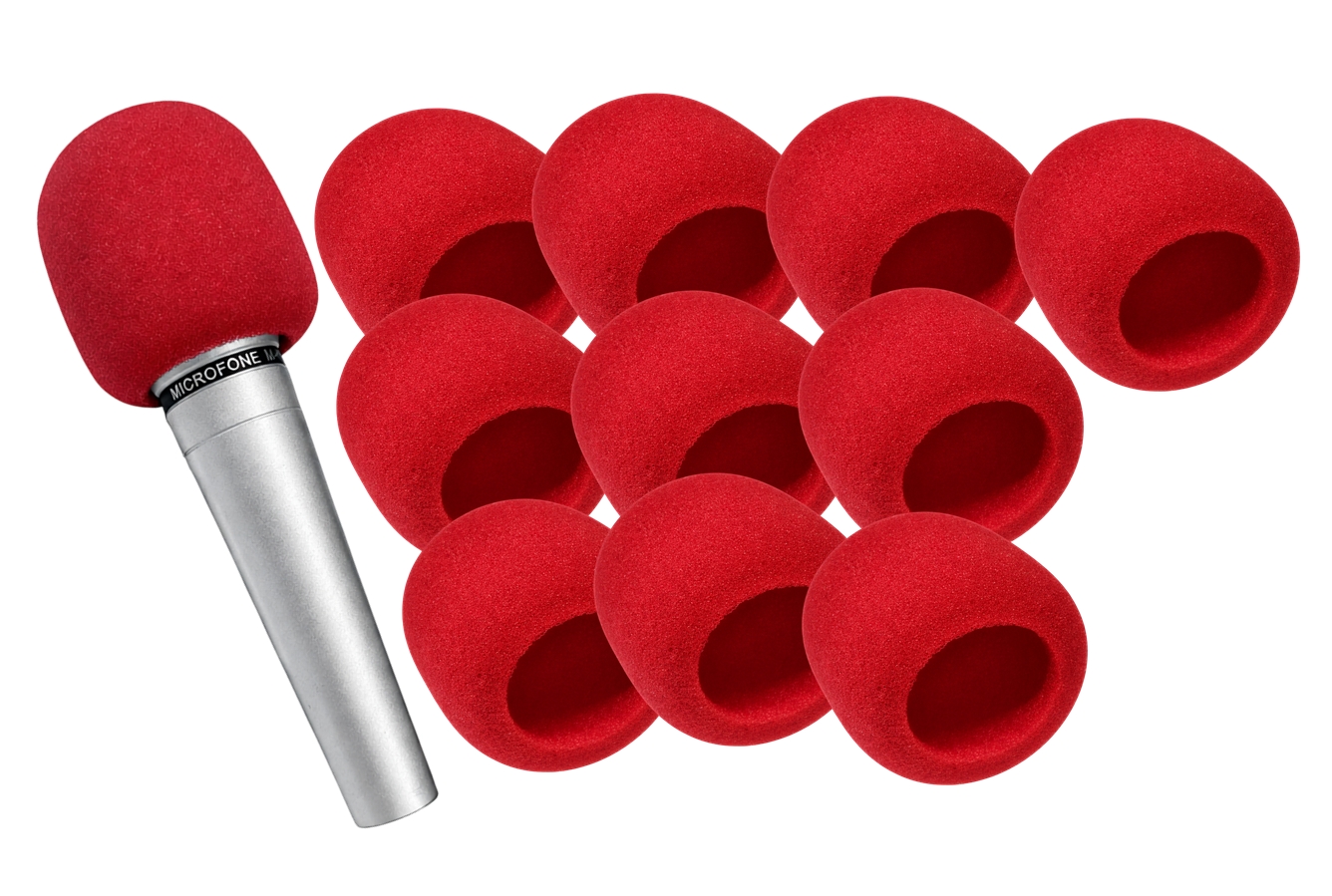 Espuma Para Microfone Grande Uso Profissional Vermelha 10un.